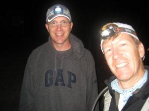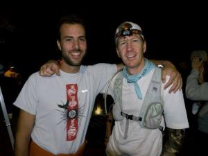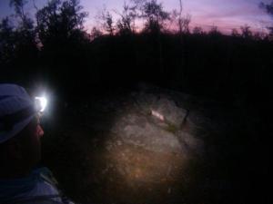 In 2011, I started struggling in this section and was having trouble maintaining a running pace or frankly running much at all. So I was downright celebrating this year how good I felt. I was in a fantastic mood, feeling fueled and running strong. About halfway through the section I turned off my headlamp and switched to the handheld light. I think it is so much more helpful when you get into the Sonju roots to use a handheld – it really throws shadows on the rocks and roots so you can read the terrain and run faster and safer (thanks for that tip, Zach). I also think it gives your brain more variety and keeps you alert – it gets pretty old following that same spot on the ground for 9 hours. Although I will say that I thought I kept seeing giant black bugs scurrying under the plants – it was just the shadows from the leaves as I waved my handheld around.