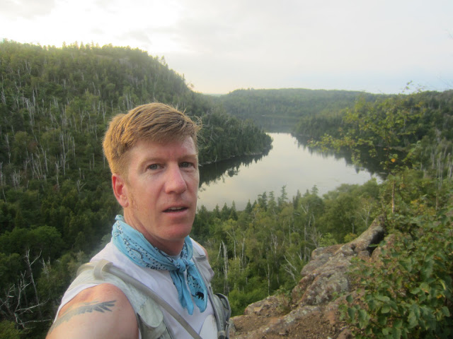 On the hike up, I could already tell the Shoe Goo was going to be a multi-step process. I stopped twice to find a rock to re-set the Goo and ended up pressing it down (with added trail dust) into the groove, hoping to re-Goo it at Tettegouche. I ran with various groups of runners in this section, and even though it was hot I was really enjoying the day. Everyone was commiserating about the heat and humidity, and anxiously anticipating the sunset. This section has a lot of exposed rocky bluffs that soak up the heat – you feel the heat rise several degrees, and it really burns you out before Tettegouche. But it also has the spectacular views of Bean and Bear Lakes, one of my favorite sections of the race. And it has the Drainpipe – its just fun to say you did The Drainpipe.