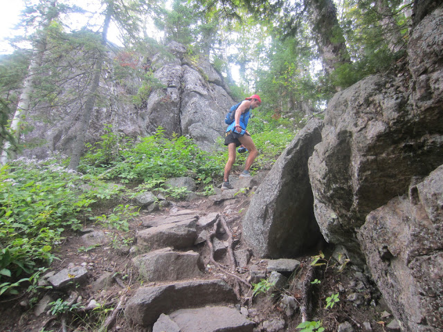This is a really epic and exciting section in this race, I feel like it combines a lot of what you get to see in all of the earlier sections. Its a great final section because this race isn’t letting you off easy! It’s also great that the 50 milers and marathoners get to run this in their events. There are some crazy ascents in this section, especially Moose Mountain, but I felt really strong and power hiked them all. Before the race I had read an article in Ultrarunning magazine about racewalking, and had decided to use some of those techniques for the ascents. I probably looked ridiculous, but anytime I got tired on an uphill during the race, I would bend my arms and swing them back and forth in front of my body and really try to think about using my hips to swing my legs forward. I had a noticeable pick up in the pace when I did this, and it was not as tiring as the caveman knuckle-drag I usually do on ascents, so for whatever its worth, I’m sold. I had great ascents in this race.
