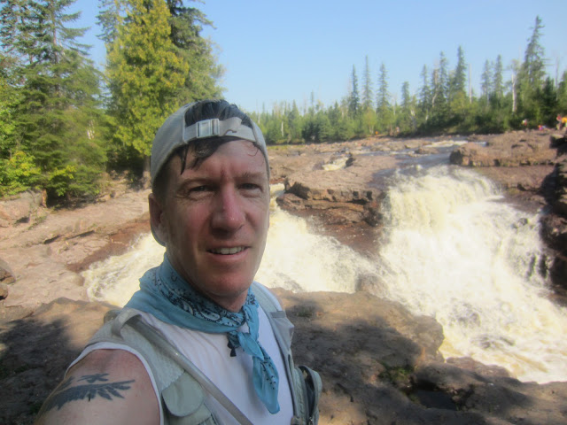 UMTR was running the Temperance station, so there were familiar faces here including Bill Pomerenke leading the station. Neil and Ian were both there, and I grabbed my drop and looked for shade which was minimal. I crowded in behind 4 gals, who seemed to retreat into a small group and start whispering to each other. I assumed it was because I probably STUNK like funk, so I apologized. They laughed and said they were “in awe” of seeing a 100-miler who was still speaking in complete sentences!! They were crewing a friend doing the marathon, and threw questions at me like “what was it like to run at night?” It was a fun chat that pumped me up because I was able to give honest answers about how great it was going. While we chatted, I kept rifling through my bag and reloading, and put on sunscreen while Ian brought me Ginger Ales one after another. I tried to keep this stop short because I wanted to ride out this wave of good feelings, and because I LOVE this next section with the Temperance River and Carlton Peak. I hit the trail and ate a gel and some Honey Stinger chews to fuel for the climb up Carlton. I walked for about 15 mins to let my stomach settle down, and then stopped at the Temperance River to wash down with my bandana. Then I started running whatever I could and pounded out those flats dodging the day hikers.