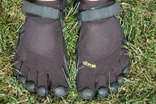 So after a little bit of a false start and a size change, I am settling into running with my FiveFingers. While I waited for my size exchange to be sent back I had started a barefoot training program, so I had a couple of weeks of getting used to running without an elevated, cushion under my feet, and got my soles a bit toughened up. I’m sure that helped jump start in the Vibrams, which I think you definitely want to start with gradually if you are coming straight from shoes.